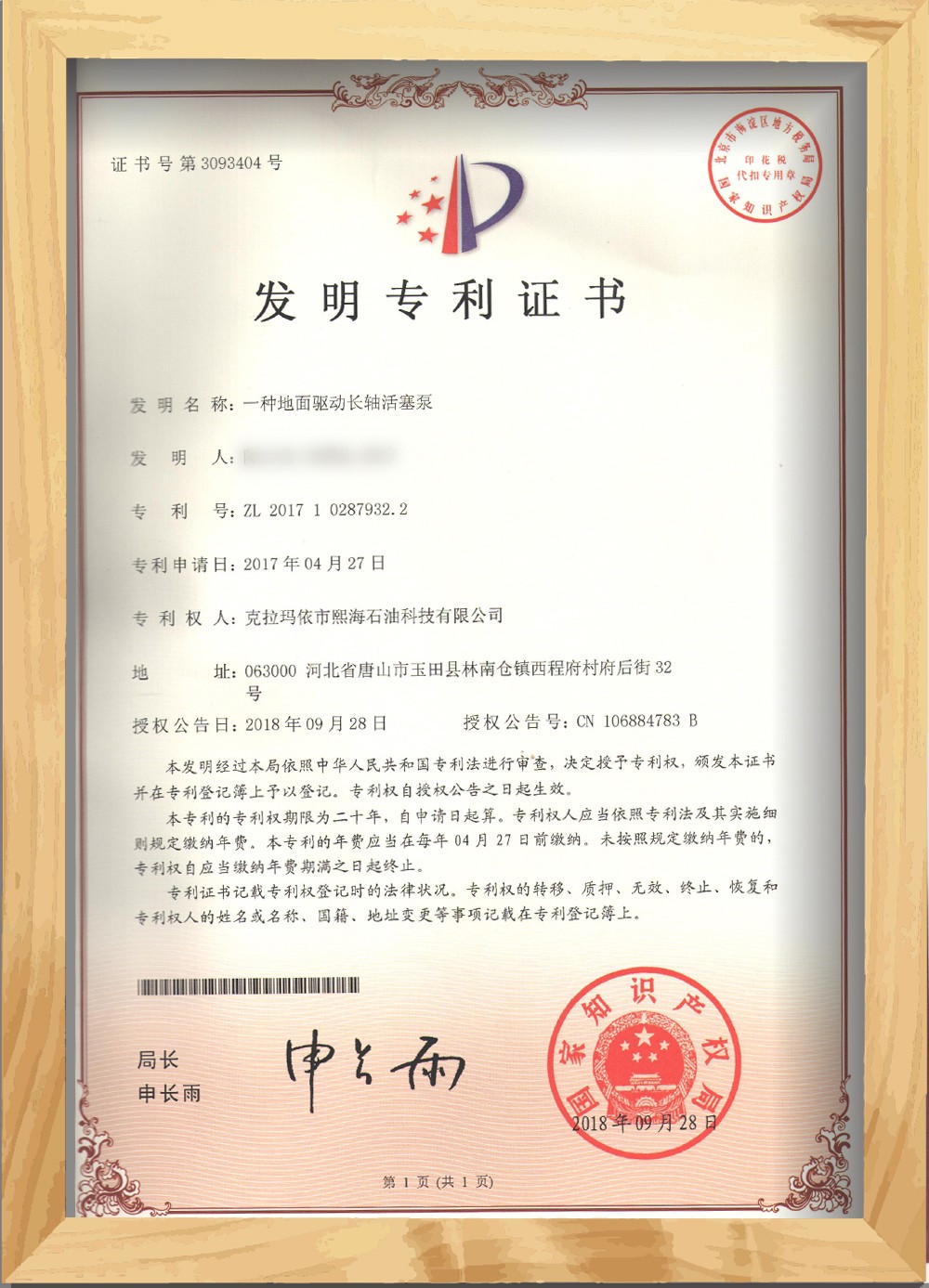 發明專利 一種地面驅動長軸活塞泵